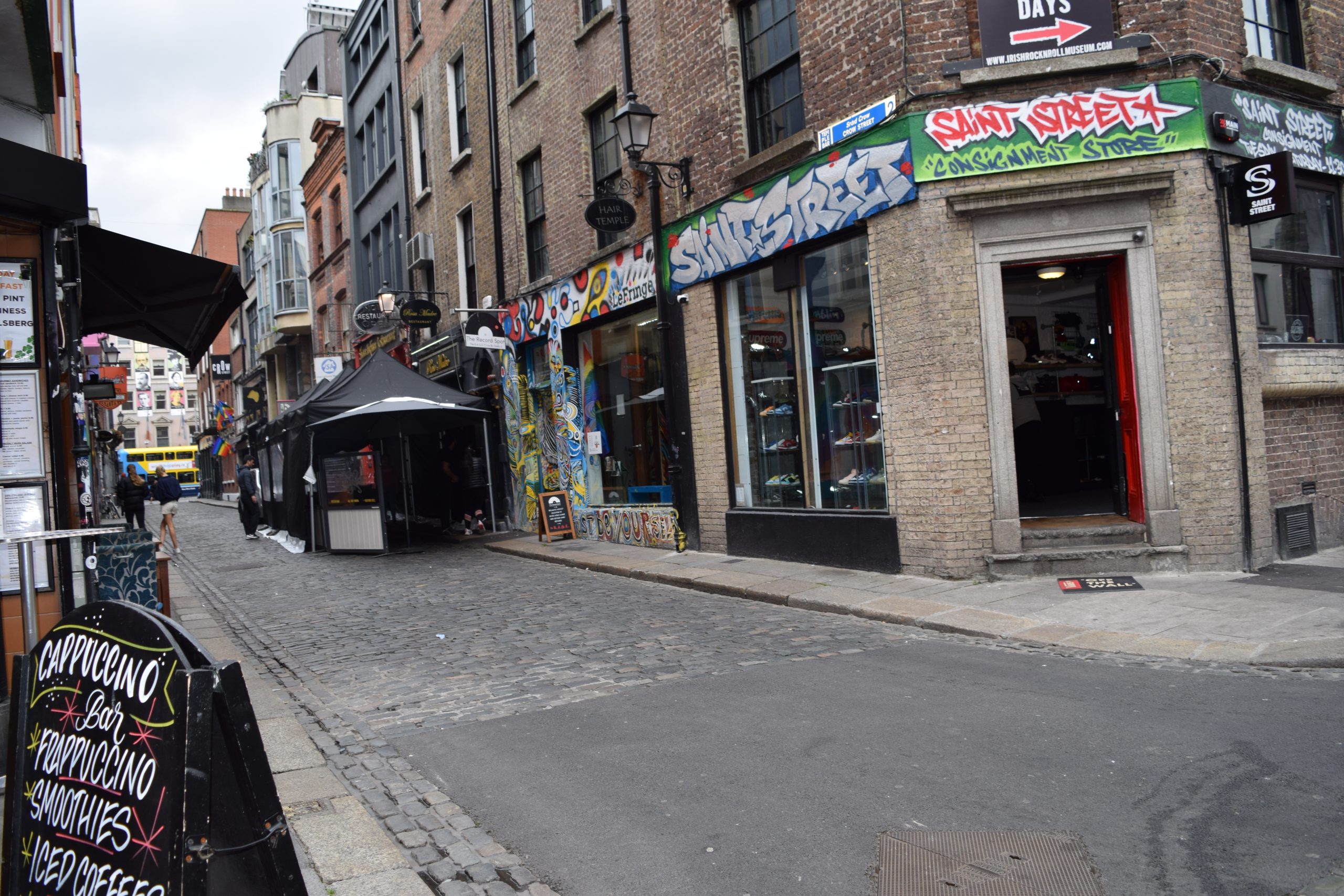 Temple Bar is a busy riverside neighbourhood, spread over cobbled pedestrian lanes. Crowded pubs host live folk music and DJ sets, and diners pack restaurants serving Asian, American and Irish cuisine. Quirky boutiques stock clothes and crafts by local designers.